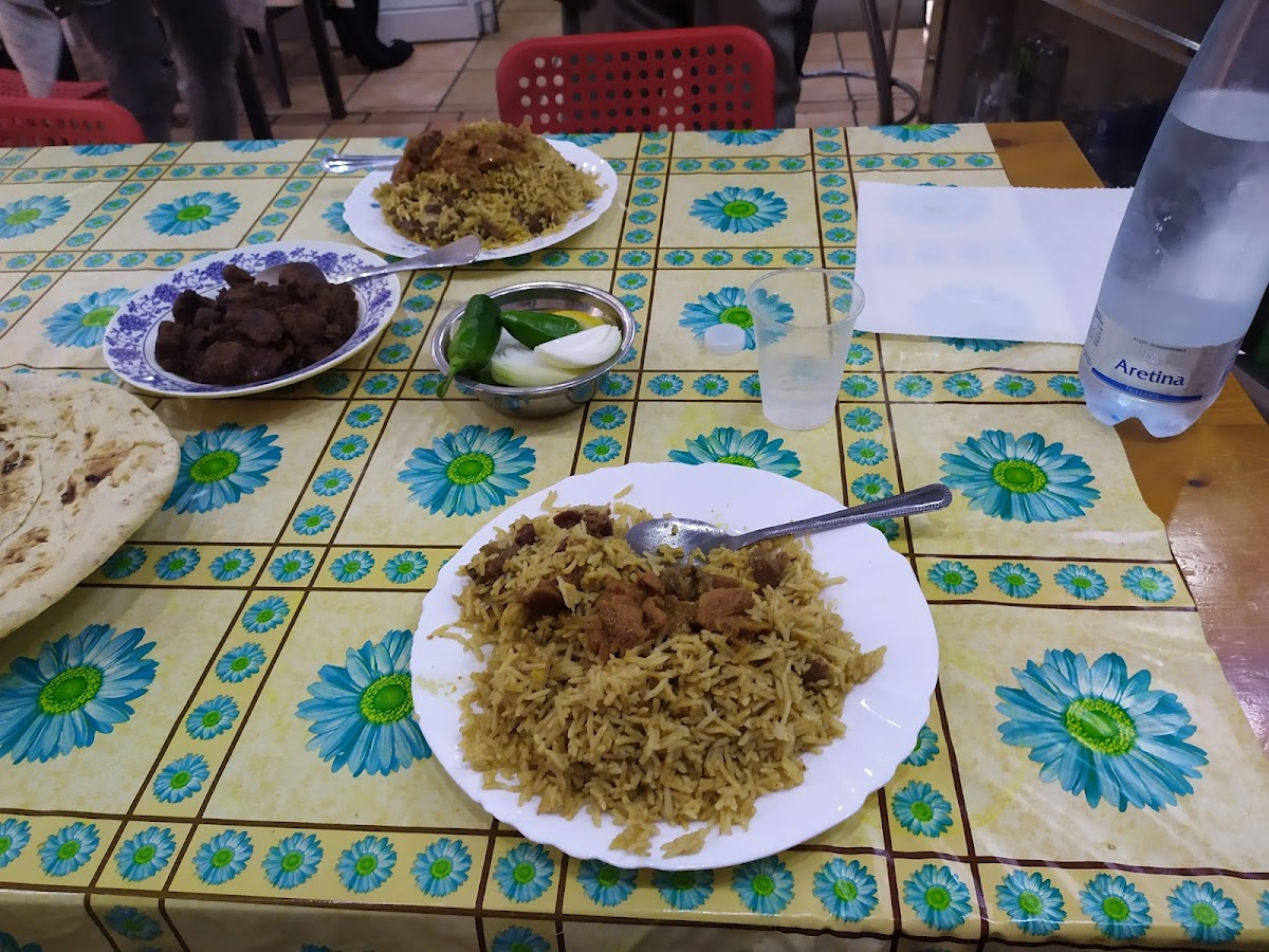 Food and service are very ok and the price is also reasonable but the problem is with the atmosphere as it is not cleaned ... there are a lot of desi options available if you are a meat lover like mutton, beaf, chicken, fish, beaf plaw, naan, roti etc.... the food quantity is enough that if you are full hungry even then 1 dish is enough to be full... Location is 600 meters from Maltesta Metro Station C, and you can reach by foot, or you can take 409 bus as well... The picture blue will cost you only 6 euro with 2 naan....